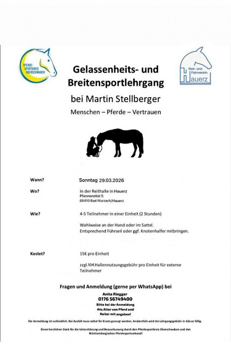 👉 Bei schlechter Witterung wird der Lehrgang verlegt auf: Reitanlage Mooshof, Untermooweiler 12, 88239 Wangen