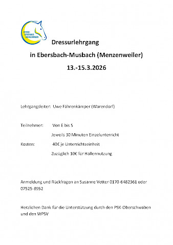 🌟 Einladung zum Dressurlehrgang 2026! 🌟