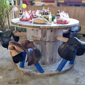 Die Jugendabteilung des Reit- und Fahrvereins Hauerz hatte eine zündende Idee, sagte Katharina Dobler aus Hauerz: „Wir bauen aus einer ausrangierten Kabelrolle aus dem Tiefbau einen großen Bartisch und mit ausrangierten Hindernisstangen und Sätteln die passenden Sitze dazu. Zugleich nehmen wir am „Preis für die beste Jugendarbeit“ im Pferdesportverband Baden-Württemberg teil. Das Thema dieses Wettbewerbs zur Nachhaltigkeit lautet: Upcycling – Altes wieder nutzbar machen.“ Geschickte Hände fertigten denn auch den neuen Bartisch an, der im Rahmen des Orientierungsrittes des RFV Hauerz am 12. Oktober versteigert wurde. Vereinsvorstand Josef Dobler hatte für die Versteigerung seinen Reiterkameraden Martin Stellberger aus Weingarten gebeten, als Auktionator zu dienen. Die Versteigerung entwickelte sich in der Tat zu einem spannenden Wettbewerb zwischen vier Reiterfreunden aus dem großen Publikum in der Reithalle in Hauerz. Am Ende erwarb Erwin Sattelberger aus Steinental den Bartisch für 500 Euro! Garniert worden war das gute Stück mit allerlei feinen Vesperpaketen und Getränken, gespendet von der örtlichen Bäckerei Mang, der Metzgerei Seif und der Floristin Rosi Schneider aus Rupprechts. Die Vertreterinnen der Vereinsjugend waren über das Ergebnis restlos begeistert: „Das Geld geht zu 100 Prozent an den Förderkreis für tumor- und leukämiekranke Kinder Ulm. Wir möchten dazu beitragen, dass den Kindern mit herzbewegenden Schicksalen etwas Licht und Freude ins Leben kommt. Manchmal ist es vielleicht auch der letzte Wunsch eines Kindes, den der Förderkreis zu erfüllen sucht, wenn die Eltern dazu finanziell nicht in der Lage sind.“ Da kam nach der Versteigerung der Gedanke auf, das Publikum spontan zu einer Hutspende aufzurufen, was bei den vielen Pferdefreunden sehr gut ankam. Noch einmal wurden 500 Euro eingesammelt. „Es ist für einen guten Zweck, da geben wir gerne noch etwas dazu“, sagte die Mutter zweier Kinder beim Einsammeln. So werden die Jugendlichen des Reitvereins Hauerz 1.000 Euro an den Förderkreis weitergeben können. Inzwischen steht der Bartisch bereits auf dem Reiterhof der Familie Sattelberger in Steinental.