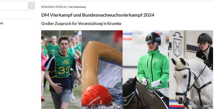 Krumke, 11.–13. April 2024 – Der Vierkampf boomt! Bei der zweiten Auflage der Deutschen Meisterschaft im Vierkampf und dem Bundesnachwuchsvierkampf trafen sich junge Allround-Talente aus ganz Deutschland in Krumke, um sich in den Disziplinen Dressur, Springen, Schwimmen und Laufen zu messen.