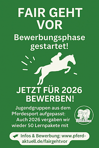 - Bewerbungsformular ausfüllen: www.pferd-aktuell.de/fairgehtvor