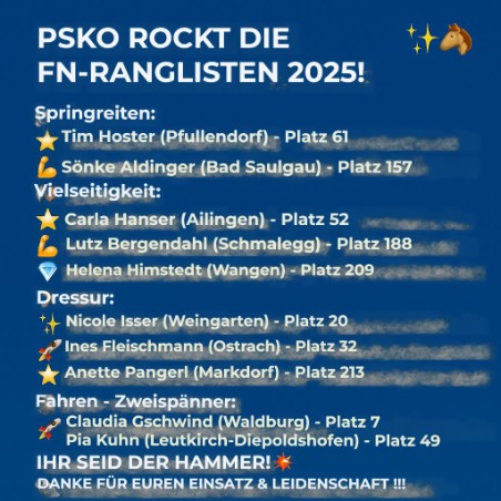 PSKO-Sportler:innen glänzen in den FN-Ranglisten 2025! 🏆🐴Springen & Vielseitigkeit & Dressur & Fahren