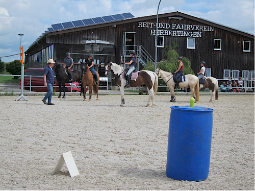 Nach langer Corona-Pause war es endlich wieder soweit: Der Reit- und Fahrverein Herbertingen lud zum Breitensport-Lehrgang – und rund 30 Teilnehmer*innen im Alter von 14 bis 72 Jahren folgten begeistert dem Ruf auf den Reitplatz!