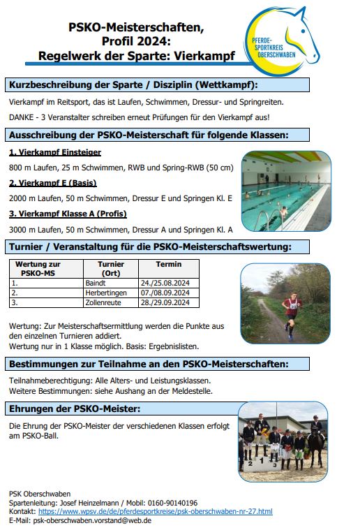 Der Pferdesportkreis Oberschwaben lädt ein zur PSKO-Meisterschaft 2024 in der Sparte Vierkampf – und das mit einem sportlichen Mix aus Laufen, Schwimmen, Dressur und Springreiten! 💪🐴
