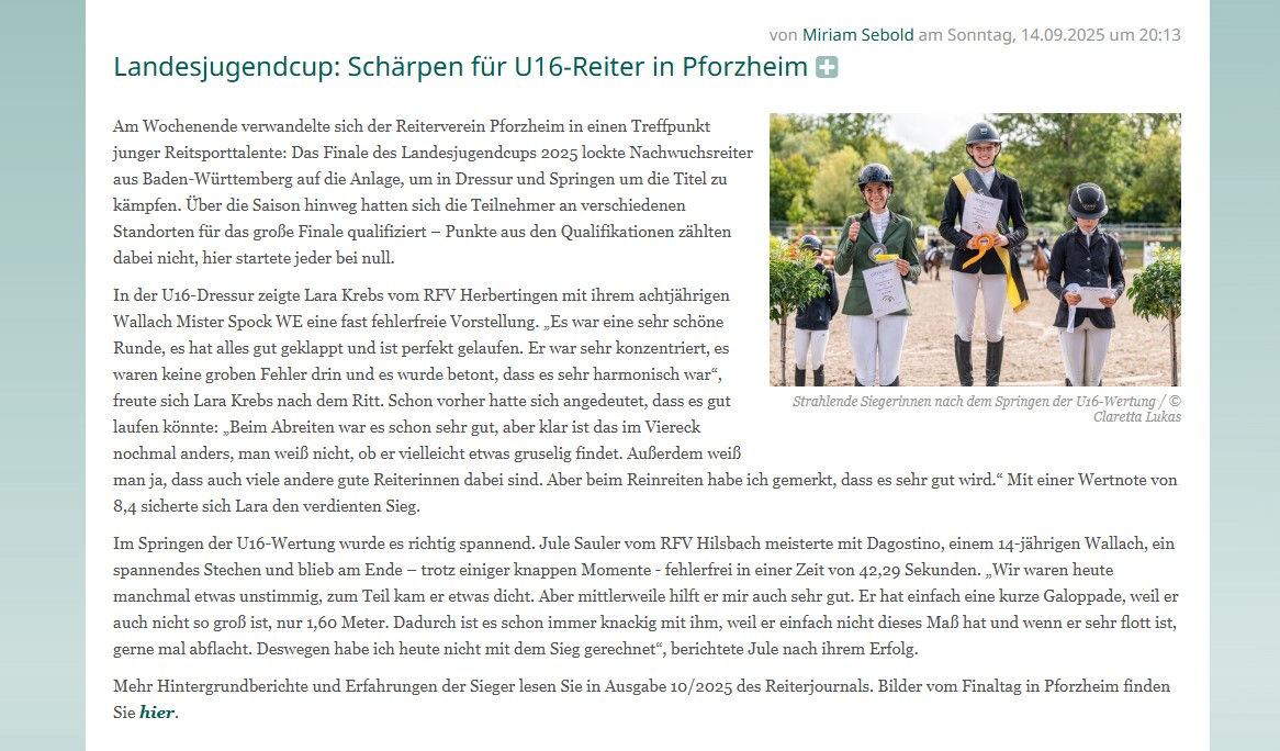Ihr habt gezeigt, was Leidenschaft, Training und Teamgeist bewirken können. Das Finale war ein echtes Highlight für den Reitsportnachwuchs in Baden-Württemberg – und ihr wart mittendrin statt nur dabei!