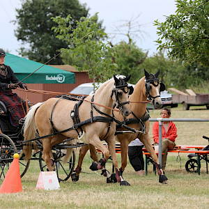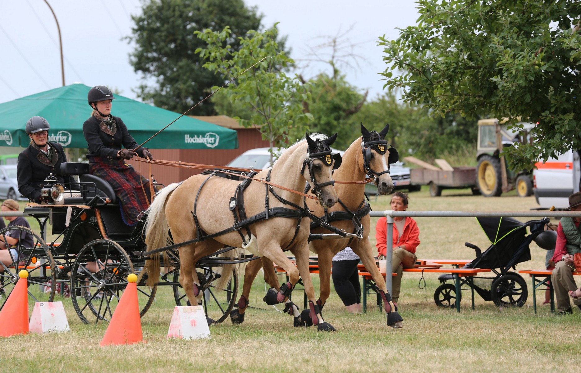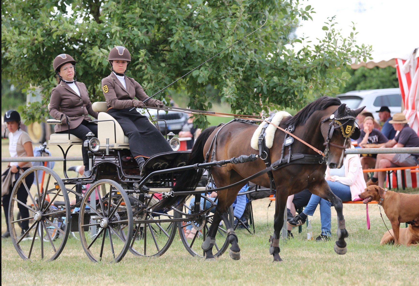 Wie häufig bei Prüfungen, bei denen sich das Ergebnis aus mehreren Teilprüfungen addiert, so auch beim Fahren, steht der Sieger erst fest, wenn alle Aktiven alle Teilprüfungen beendet haben. Mit der Dressur wurde der Grundstein zum späteren Erfolg gelegt. Schlechte Dressurergebnisse lassen sich nicht mit schnellen Runden im Gelände aufholen. In der Klasse A waren nach der drei Kilometer langen Aufwärmphase vier Geländehindernisse zu fahren. In der Klasse M mussten fünf Hindernisse bewältigt werden. Das Zwischenergebnis nach Dressur und Gelände wurde am Finaltag nochmals tüchtig durcheinandergewirbelt. Die Entscheidung über Schärpe und Medaillen fiel erst nach dem Kegel fahren. Cindy Weiß (Neuselhalden) schaffte es mit ihrem Zweispänner Pony als Einzige ohne Fehler im Kegelparcours. Alle anderen mussten Abwürfe oder Zeitfehler in Kauf nehmen. Mit einer guten Runde im Kegel fahren schaffte so manch Einer noch den Sprung auf das bereits verloren geglaubte Treppchen.