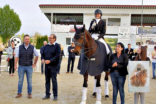 Der Erfolg beeindruckte auch Ulf König, Grand-Prix-Reiter aus Heltersberg, Rheinland-Pfalz. Er hatte Corinna Peter einst das Pferd vermittelt und war eigens für die Ehrung angereist, um ihr zu gratulieren. Rudi Horn sagte abschließend anerkennend: „Dein Erfolg ist durch harte Arbeit, Ausdauer und viel Training mit Deinem Pferd zustande gekommen!“