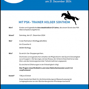 Unter der fachkundigen Leitung von PSK-Trainer Holger Sontheim wurde nicht nur geritten, sondern auch analysiert, erklärt und inspiriert. Ob Dressur, Springen oder erste Schritte ins Gelände – die jungen Reiterinnen und Reiter konnten wertvolle Erfahrungen sammeln und ihre Vielseitigkeitsfähigkeiten gezielt weiterentwickeln.