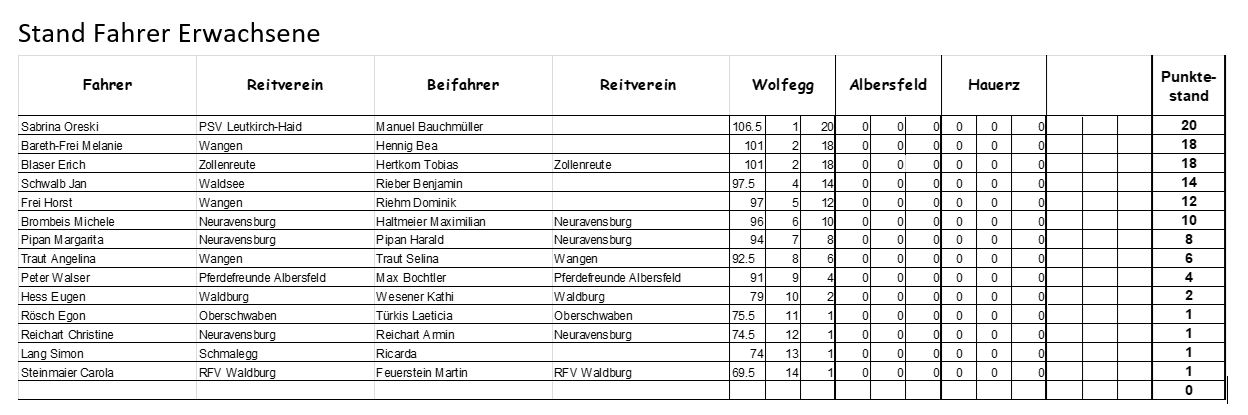 Zwischenstand PSK Oberschwaben-Cup Breitensport 2025 - Wolfegg 🏅