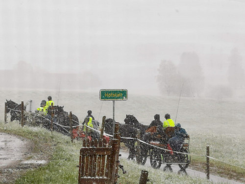 Bei gefühlten 0 Grad, Schneeregen und Wind gingen 21 Reiterpaare und 7 Gespanne an den Start. Besonders erfreulich: 4 Jugend-Gespanne zeigten, wie lebendig der Nachwuchs im Fahrsport ist!