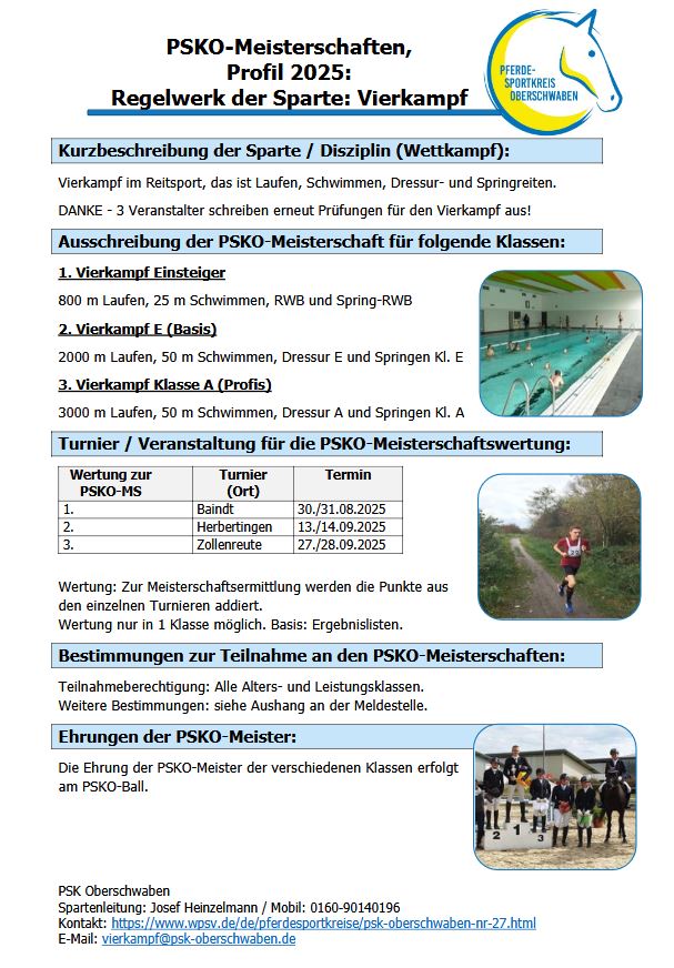 Der Pferdesportkreis Oberschwaben lädt ein zur PSKO-Meisterschaft 2025 in der Sparte Vierkampf – und das mit einem sportlichen Mix aus Laufen, Schwimmen, Dressur und Springreiten! 💪🐴