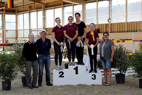 Alle vom RFV Krumbach, mit Longenführerin Martina Fröhlich und dem Pferd Divino Rosso