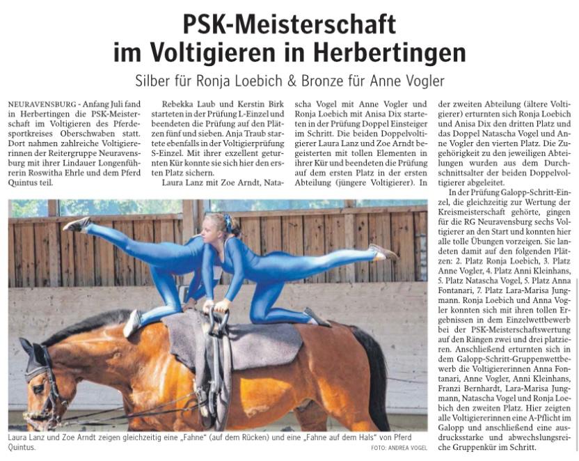 Die diesjährige PSK-Meisterschaft wurde vom RFV Herbertingen ausgerichtet – mit beeindruckenden Leistungen im Einzelvoltigieren! 💪