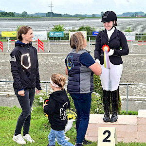 Eva Pogea vom RFV Krumbach und ihr eleganter Wallach Finnian 3 zeigten, wie man ein Turnier dreht: Nach Platz 5 in der ersten PrĂŒfung legten sie in der L** richtig los und holten sich mit einem starken Ritt den Meistertitel!