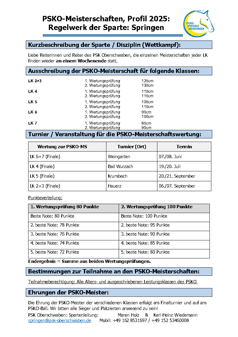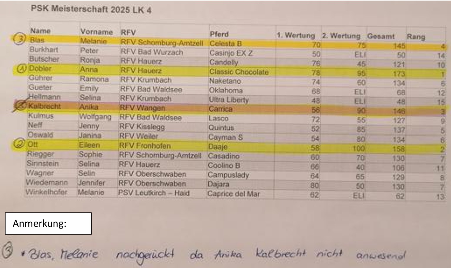 Zwischenstand Springen - PSK Oberschwaben-Meister Springen 2025 - LK 4 🏅