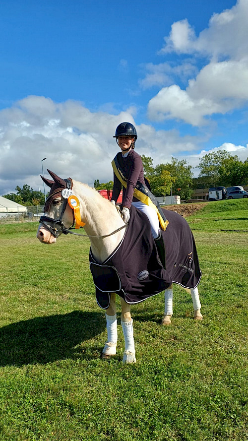 Ebenso beeindruckend: Anna Bassani vom PSV Oberstaig, die mit Adonis im U15 Springen nicht nur fehlerfrei blieb, sondern mit einer rasanten Zeit und einer 8,5 die Konkurrenz hinter sich ließ. 🏆