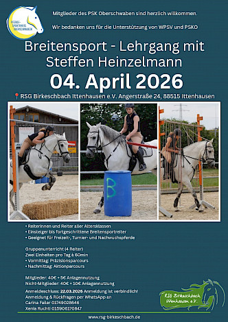 🌟 Unterstützt durch: WPSV und PSK Oberschwaben – herzlichen Dank! ✨ „Immer schön vielseitig bleiben!“ Sichert euch euren Platz für zwei erlebnisreiche, pferdefreundliche und hochqualitative Trainingstage.
