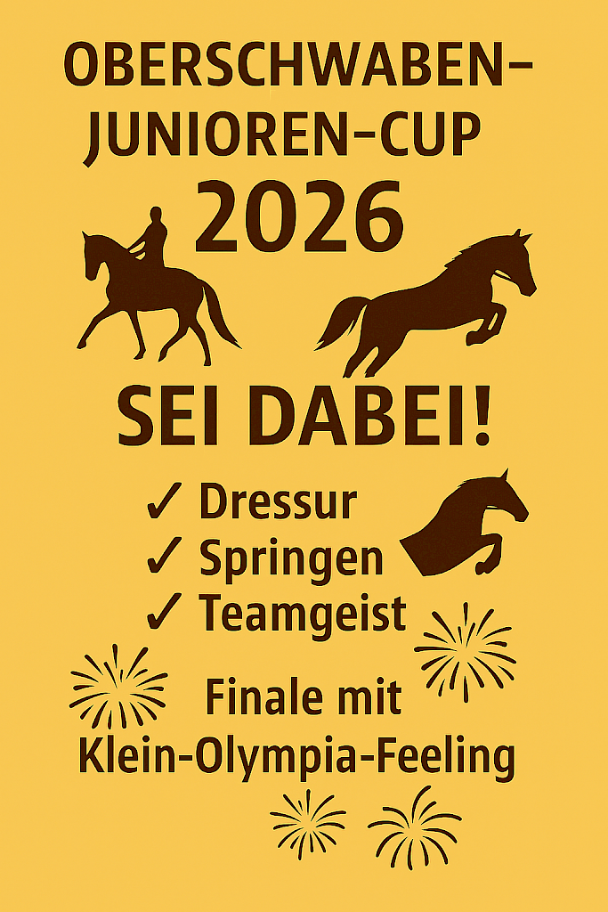 📌 SAVE THE DATE! Oberschwabenjunioren-Cup 2026 🏇 Dressur- & Springen bis Kl L beim Reit- und Fahrverein Krumbach e.V.🎉 Einladung zum Saisonauftakt – Oberschwabenjunioren-Cup 🎉 Liebe Nachwuchsreiterinnen und -reiter, 📅 Wann? 📍 Wo? 🐴 Was erwartet euch?