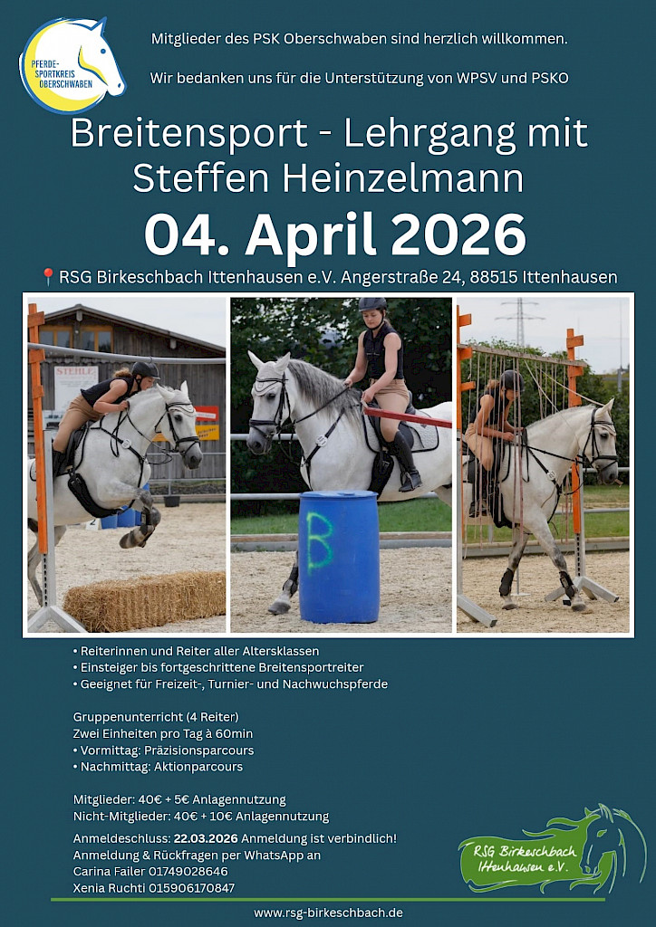 🌟 Unterstützt durch: WPSV und PSK Oberschwaben – herzlichen Dank! ✨ „Immer schön vielseitig bleiben!“ Sichert euch euren Platz für zwei erlebnisreiche, pferdefreundliche und hochqualitative Trainingstage.
