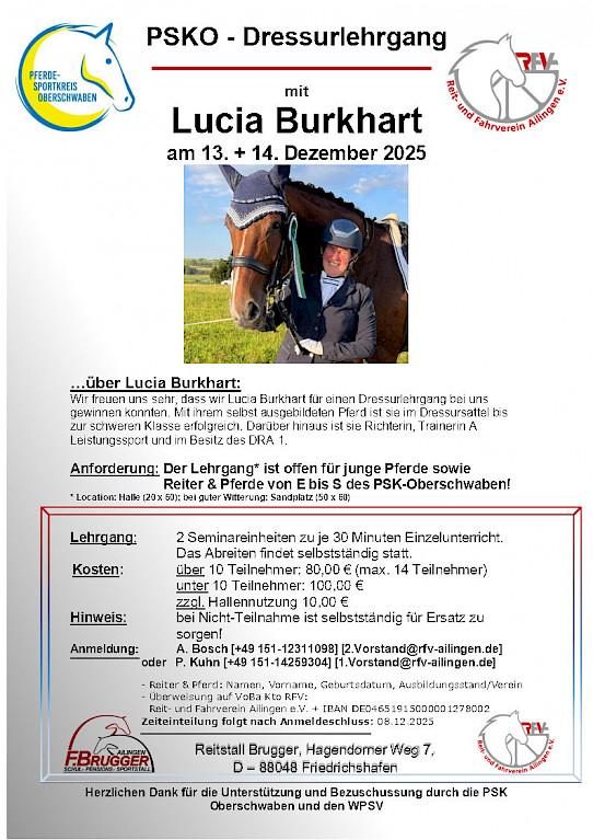 🎉 Einladung zum PSKO-Dressurlehrgang mit Lucia Burkhart!