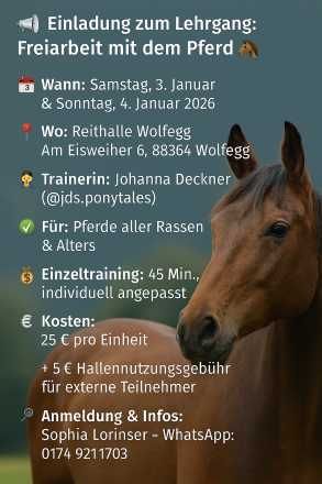 🔹 Für alle Leistungsklassen & Reitweisen – auch Jungpferde willkommen!