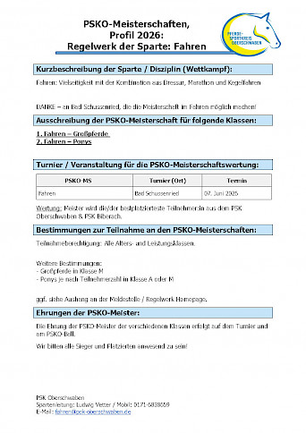 Der Reit- und Fahrverein Bad Schussenried lädt euch herzlich ein zur PSKO Meisterschaft im Fahren.