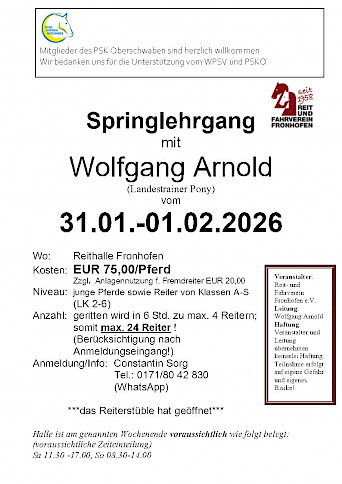 🌟 PSKO-Springlehrgang mit Wolfgang Arnold (Landestrainer Pony) am 31.01-01.02.2026 in Fronhofen